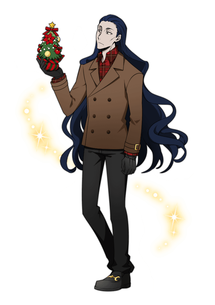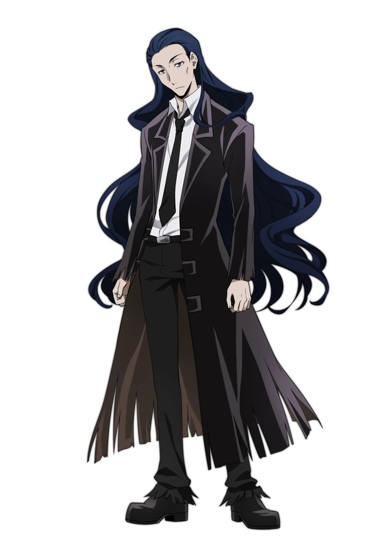 Lovecraft Bungou Stray Dogs : He has dark navy, slightly wavy hair that reaches well past his waist, and is always seen pulled back so that it all falls behind him.