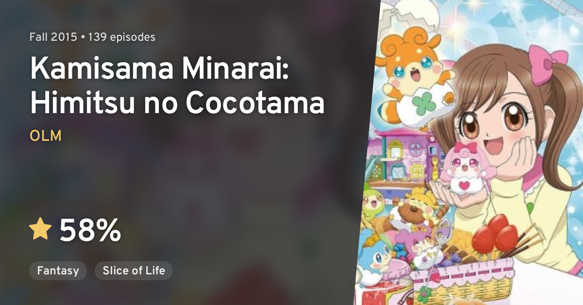 Kamisama Minarai Himitsu No Cocotama August 17, 2020Entertainment Kamisama Minarai Himitsu No Cocotama : Cocotama are tiny gods born from the thoughts and feelings of objects that people use with great care.